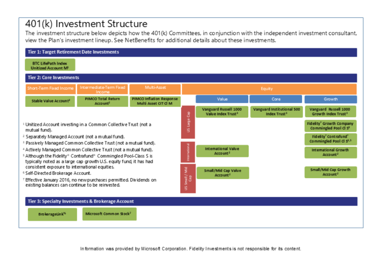 Find out about the fees associated with all Plan investments on Fidelity NetBenefits. Select Microsoft 401(k) Plan, click Investments, then Performance & Research.